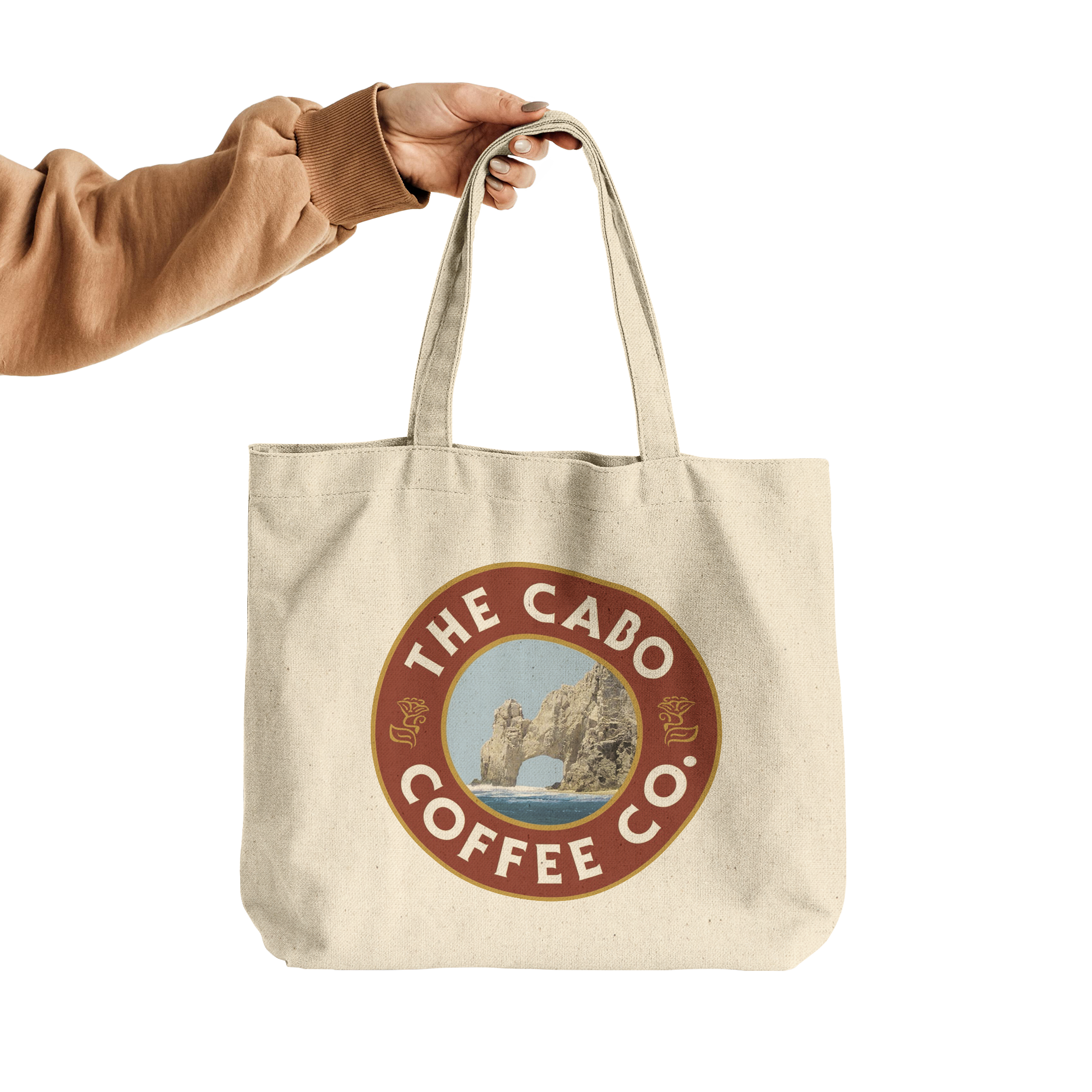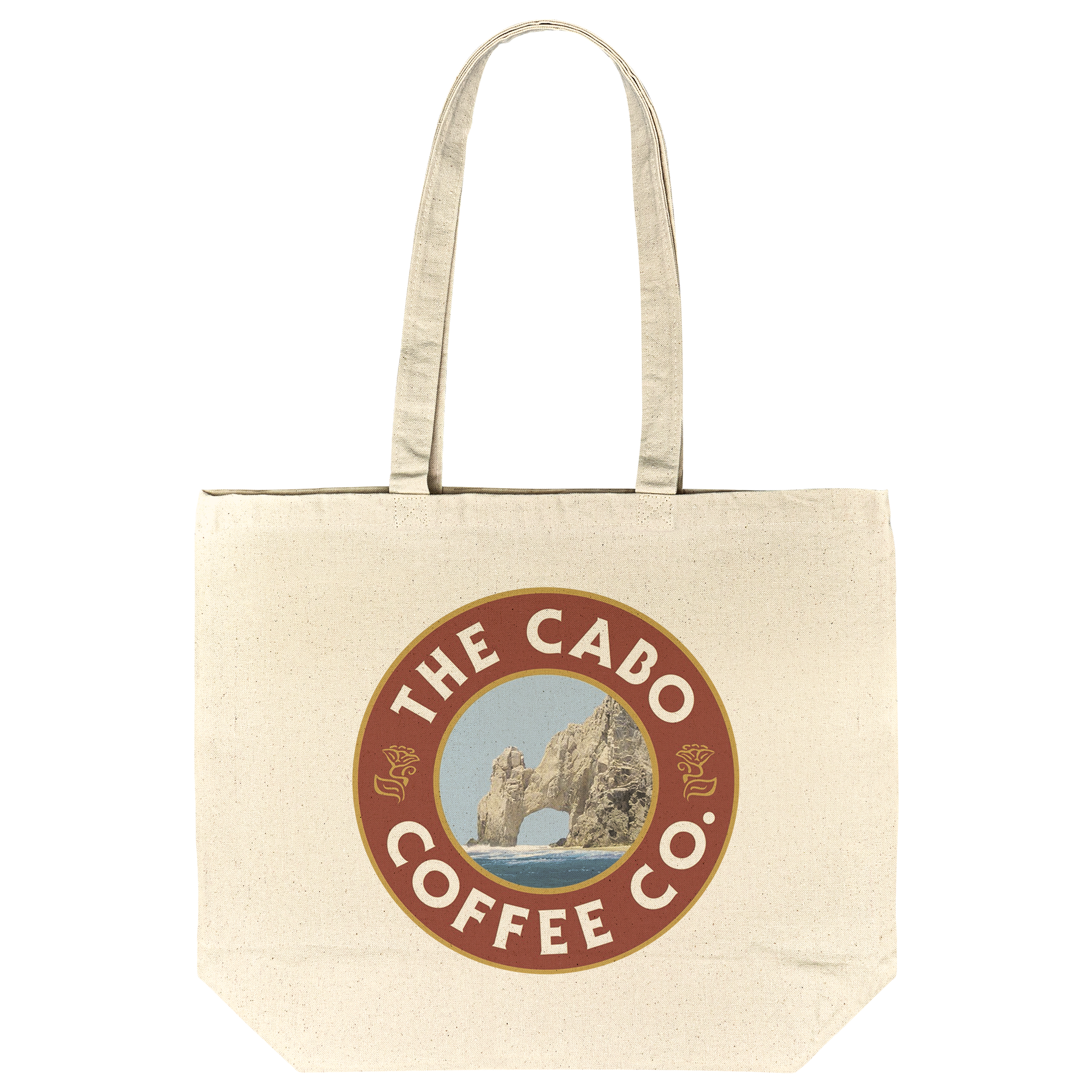 Carry your Cabo Coffee love everywhere you go with this eco-friendly, gusseted cotton tote. Made from 100% recycled materials, this sturdy 18x15” bag is perfect for market runs, beach days, or everyday errands.